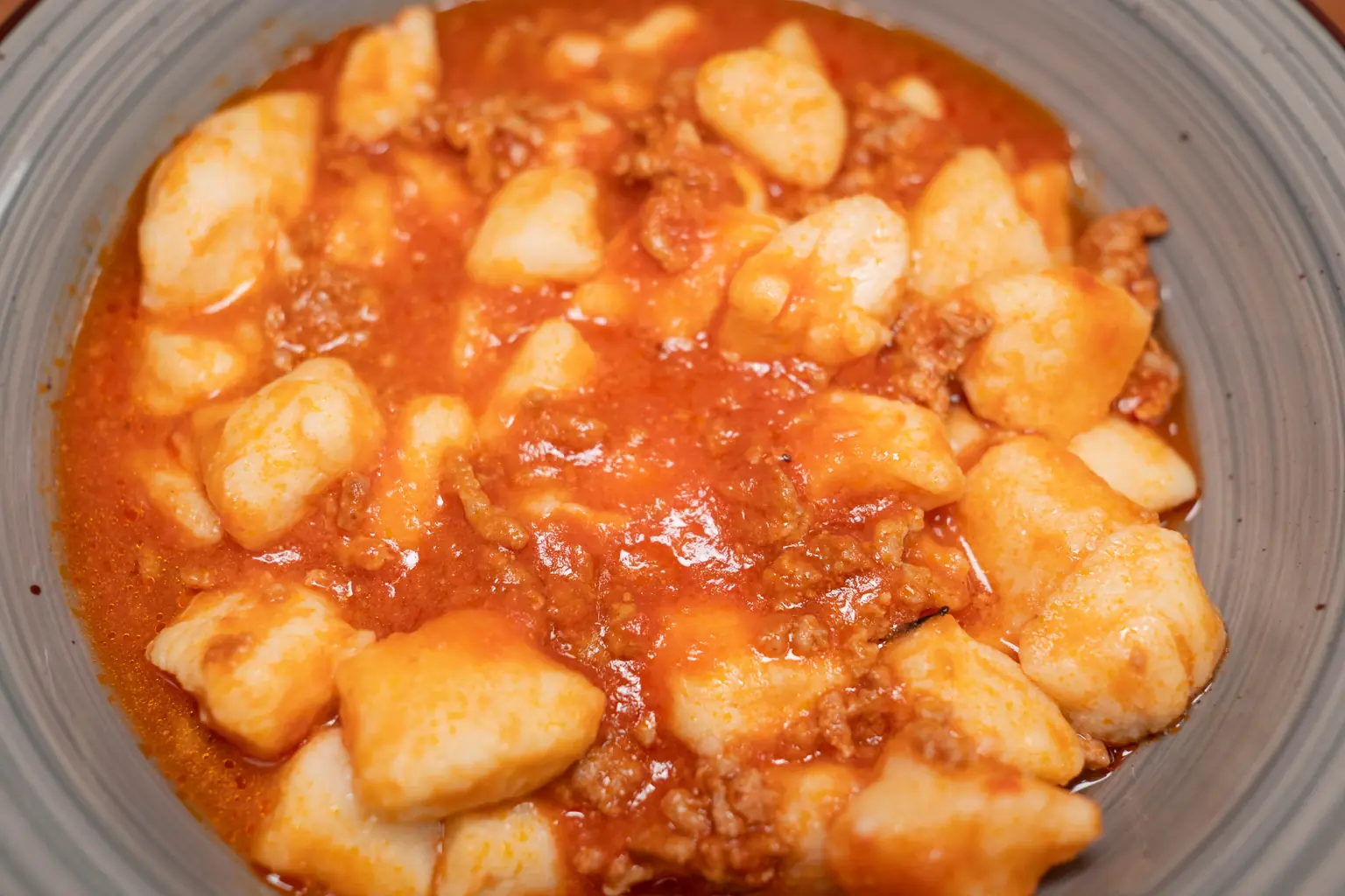 Pasta fresca tirata a mano ogni giorno, con sughi corposi fatti con pelati freschi portati direttamente da casa;